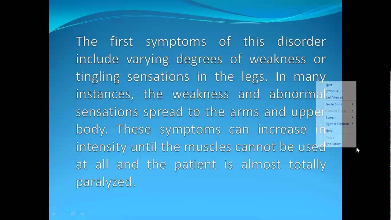 Yuki n, kokubun n, kuwabara s guillain-barré syndrome. Symptoms include varying degrees of tingling sensations or weakness in the legs.
